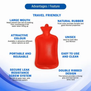 Brand AMKAY Pattern Plain Model Name/Number AMKHWB-172 Size 2 L Shape Rectangular Shape Material Rubber Type Ribbed On One Side Material: Rubber, unlike other unreliable water bags, its can resist the hot water pressure comfortably Guaranteed rubber hot bag, Leak proof, colorful, Easy to clean & Keep water hot for longer time.
