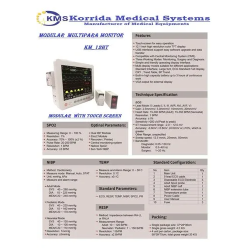 5 standard parameters ECG, RESP, NIBP, SPO2,1-TEMP