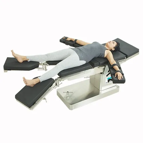 Fully electrically operated table, five sections, radio-translucent table top with eccentric