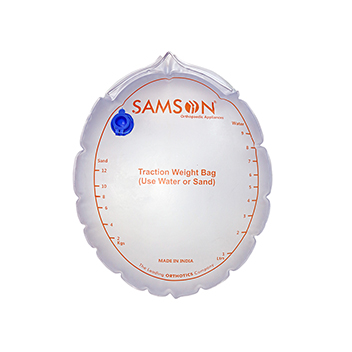 Traction Weight Bag is a traction halter which holds the pelvic area and pulls the sacral, lumbar and thoracic areas of the vertebral column. Pelvic traction belt through the slings on the two sides get attached to the spreader bar, traction pulley bracket and the weights.